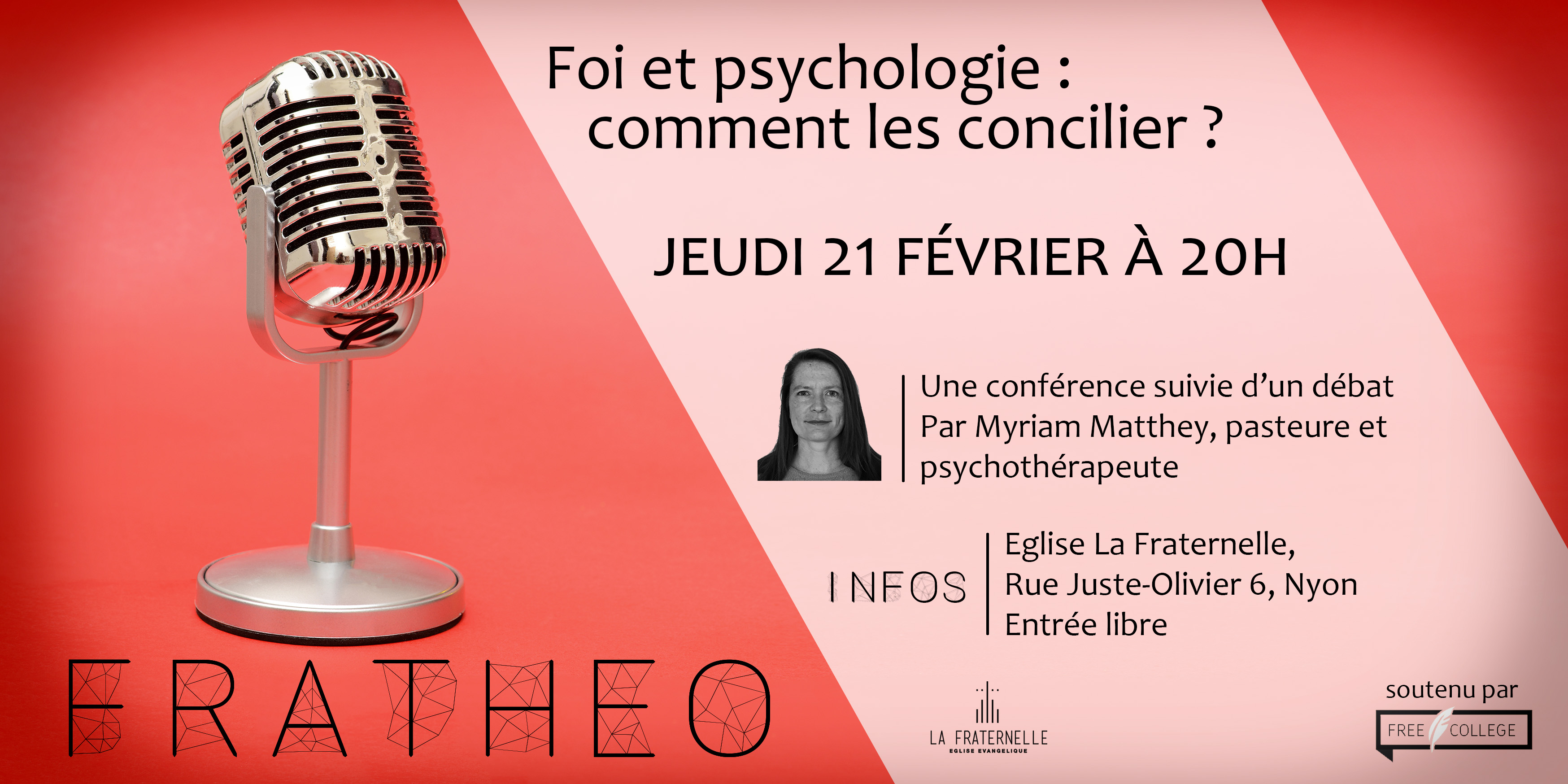 jeudi 21 février 2019 à 20h, Eglise évangélique La Fraternelle, Rue Juste-Olivier 6 à Nyon.